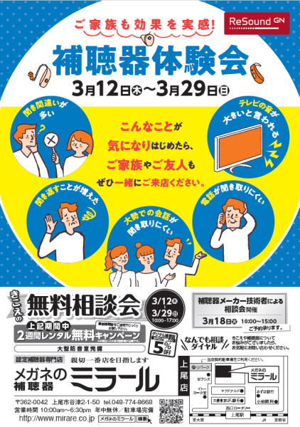 【3/18開催】リサウンド補聴器相談会を開催します☆☆☆ ー メガネ・補聴器のミラール上尾店