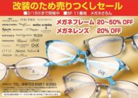 東武百貨店池袋店5階11番地メガネさろんでは、来春売場をリニューアルオープンする予定です。 リニューアルに先立ちまして、改装のため売りつくしセールを開催いたします。 メガネフレーム20%~50%OFFなど、お買い得品を数 […